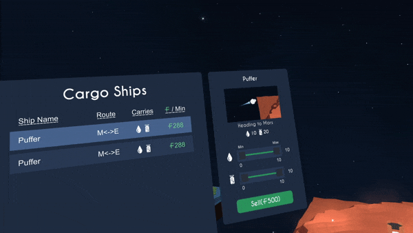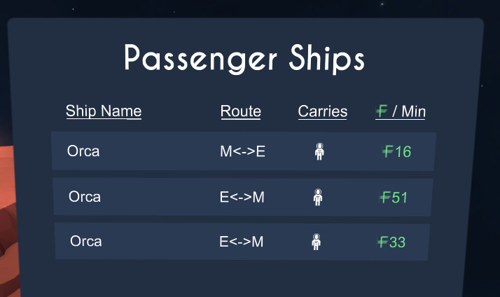 With the ship management panel you can get a quick performance overview of your fleet of transport ships.